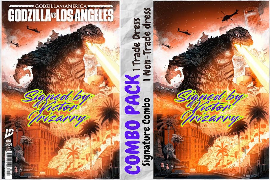 Fresh off Godzilla's destructive stop in Chicago, the King of the Monsters is headed for Hollywood! Join a superstar team of Los Angeles–based comics creators for four incredible stories all set in the filmmaking capital of the world. A terrified film crew does everything they can to trick our favorite kaiju, residents use a guide to LA's transit system to escape the monsters' attack, and much, much more in the second installment of Godzilla vs. America!